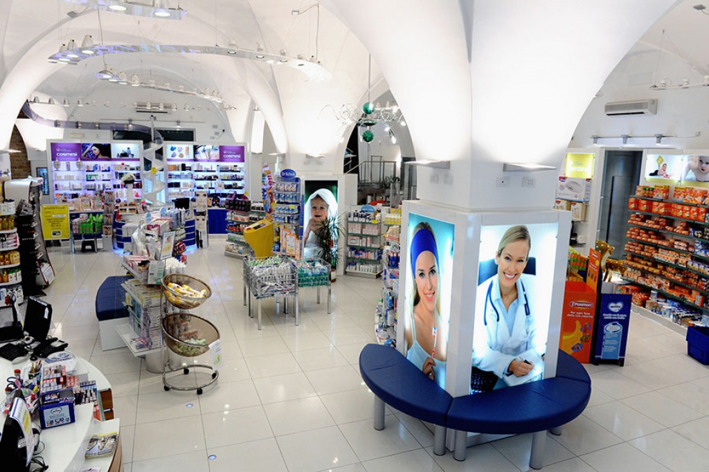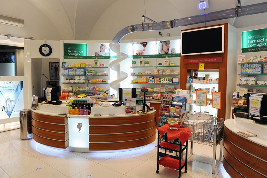 7 sono le postazioni di ricezione disposte al piano terra della nuova Farmacia Cavaliere, molte delle quali settorialmente specializzate. Grande spazio, tra queste, è dedicato alla cosmesi, all’omeopatia e alla puericultura.