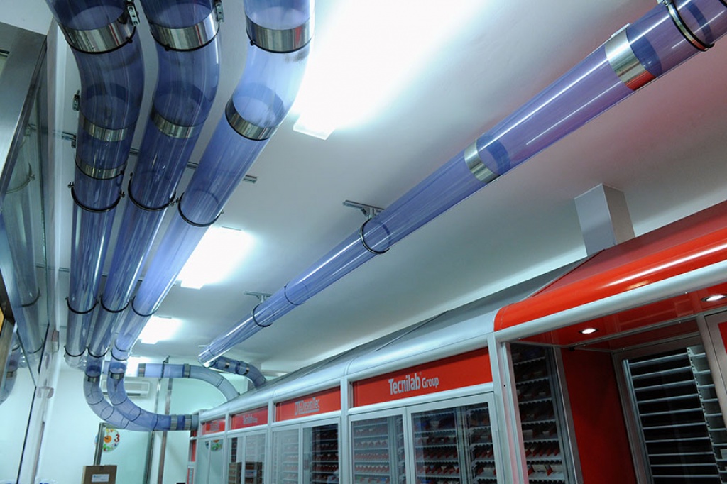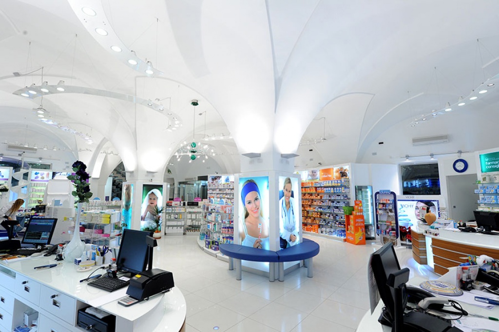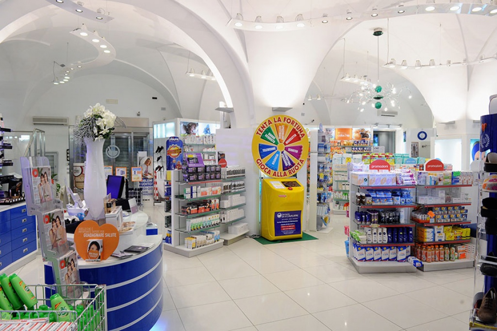Luogo di salute, benessere e assistenza integrata, la nuova farmacia è concepita per favorire un rapporto più diretto tra il farmacista e l’utente-paziente. A cominciare dal sistema di erogazione automatizzata dei farmaci Dreamtech, costituito da un serpentone in PVC trasparente, che si snoda superiormente al bancone, e da un magazzino robotizzato, in cui i farmaci sono custoditi e gestiti secondo un’attenta programmazione, già predisposta all’integrazione con la lettura dei codici a barre, che prossimamente sarà obbligatoria per legge. Il farmacista ordina dal computer di banco il farmaco e il sistema lo estrae dal magazzino, sospingendolo con un getto d’aria, attraverso il serpentone, direttamente sul bancone. Questo sistema, oltre che abbreviare i tempi di evasione della richiesta, evita al farmacista di andare a cercare personalmente il farmaco, permettendogli di dedicare più tempo all’utente, soddisfacendone così le richieste di consiglio e la fase di ascolto in genere. Il magazzino automatizzato, inoltre, monitora le scadenze dei farmaci e le tendenze di consumo, evitando così all’utenza di ricevere erroneamente farmaci scaduti o di dover ritornare in farmacia in altri momenti, a causa dell’impossibilità di evadere la richiesta per mancata disponibilità del prodotto.