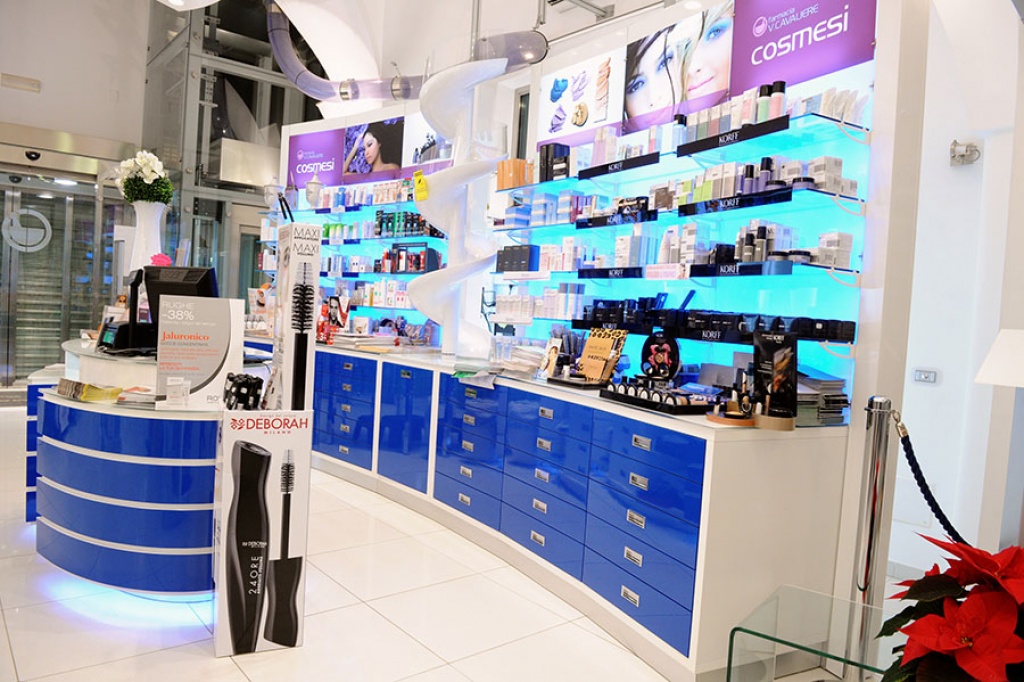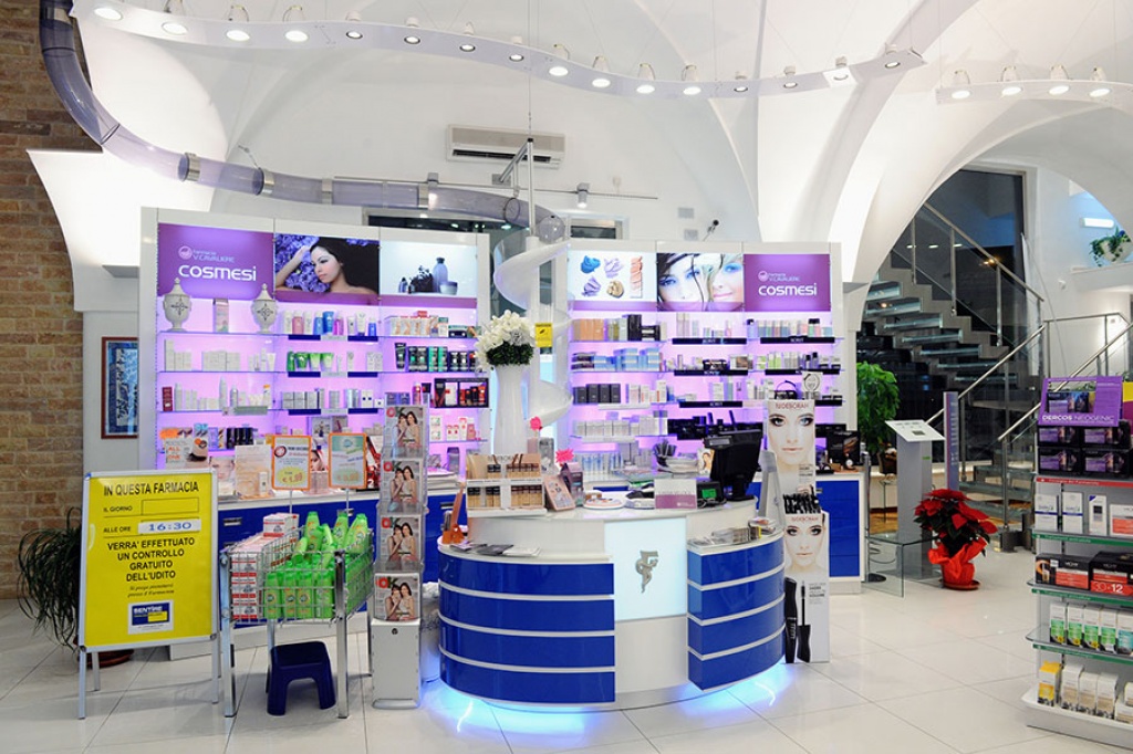 7 sono le postazioni di ricezione disposte al piano terra della nuova Farmacia Cavaliere, molte delle quali settorialmente specializzate. Grande spazio, tra queste, è dedicato alla cosmesi, all’omeopatia e alla puericultura.