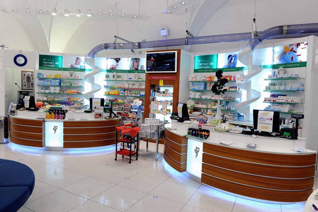 Luogo di salute, benessere e assistenza integrata, la nuova farmacia è concepita per favorire un rapporto più diretto tra il farmacista e l’utente-paziente. A cominciare dal sistema di erogazione automatizzata dei farmaci Dreamtech, costituito da un serpentone in PVC trasparente, che si snoda superiormente al bancone, e da un magazzino robotizzato, in cui i farmaci sono custoditi e gestiti secondo un’attenta programmazione, già predisposta all’integrazione con la lettura dei codici a barre, che prossimamente sarà obbligatoria per legge. Il farmacista ordina dal computer di banco il farmaco e il sistema lo estrae dal magazzino, sospingendolo con un getto d’aria, attraverso il serpentone, direttamente sul bancone. Questo sistema, oltre che abbreviare i tempi di evasione della richiesta, evita al farmacista di andare a cercare personalmente il farmaco, permettendogli di dedicare più tempo all’utente, soddisfacendone così le richieste di consiglio e la fase di ascolto in genere. Il magazzino automatizzato, inoltre, monitora le scadenze dei farmaci e le tendenze di consumo, evitando così all’utenza di ricevere erroneamente farmaci scaduti o di dover ritornare in farmacia in altri momenti, a causa dell’impossibilità di evadere la richiesta per mancata disponibilità del prodotto.