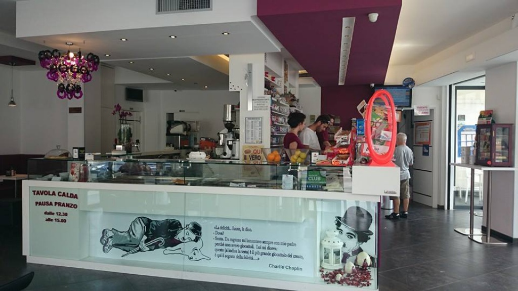 Il bar è punto di incontro di ragazzi e famiglie dove passare il tempo, rilassarsi godersi un ottima colazione o un buon gelato artigianale. Il bar presenta tre diversi ambienti, il primo è il Bar Tabacchi in se' con un banco a isola da una parte dedicato alla vendita di tabacchi e giochi e dall'altra dedicata a Bar, alcolici e Cornetteria, altro ambiente è la sala a vetro, bene in vista dove è consentito anche fumare, mentre l'altra interna piu' riservata dedicata alla privacy e Tavola Calda. Il Bar è quindi Cornetteria, Caffetteria, Tavola Calda, Tabacchino, Ricevitoria dove poter giocare il lotto e pagare qualsiasi tipo di bolletino postale o bancario, ma anche LIVE MUSIC e Ottimi Aperitivi, Aperto tutti i giorni anche la Domenica.